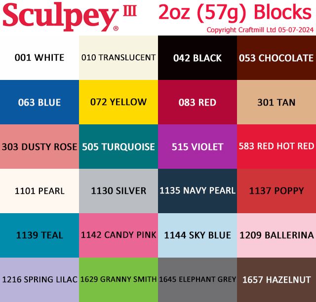 Now in a huge gorgeous colour range, Sculpey III - 3- has great workability and softness and is a very popular choice for all kinds of creative projects.